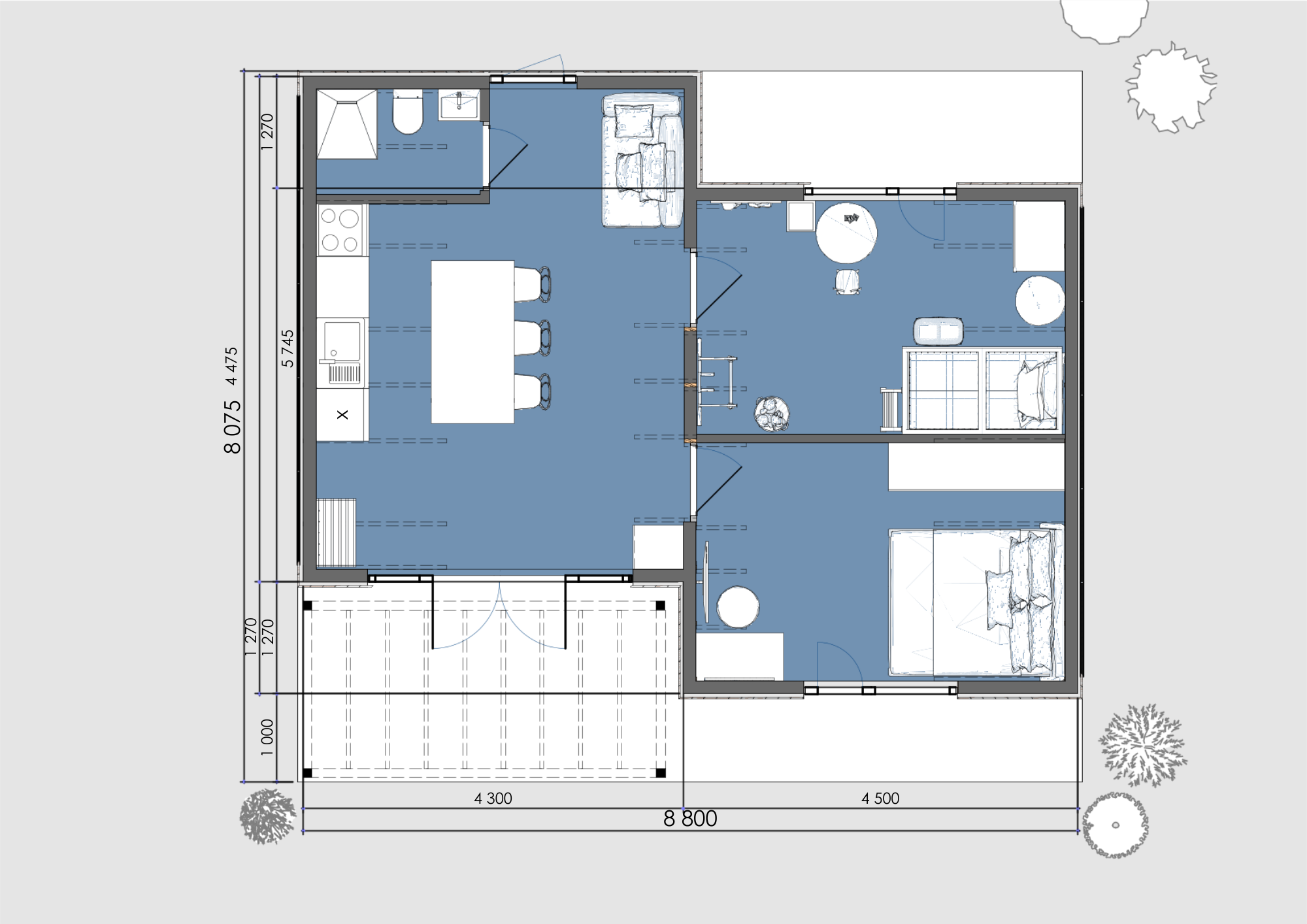 Флет Хаус 58 м² — компактний дім, у якому є все для комфортного життя.