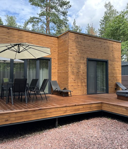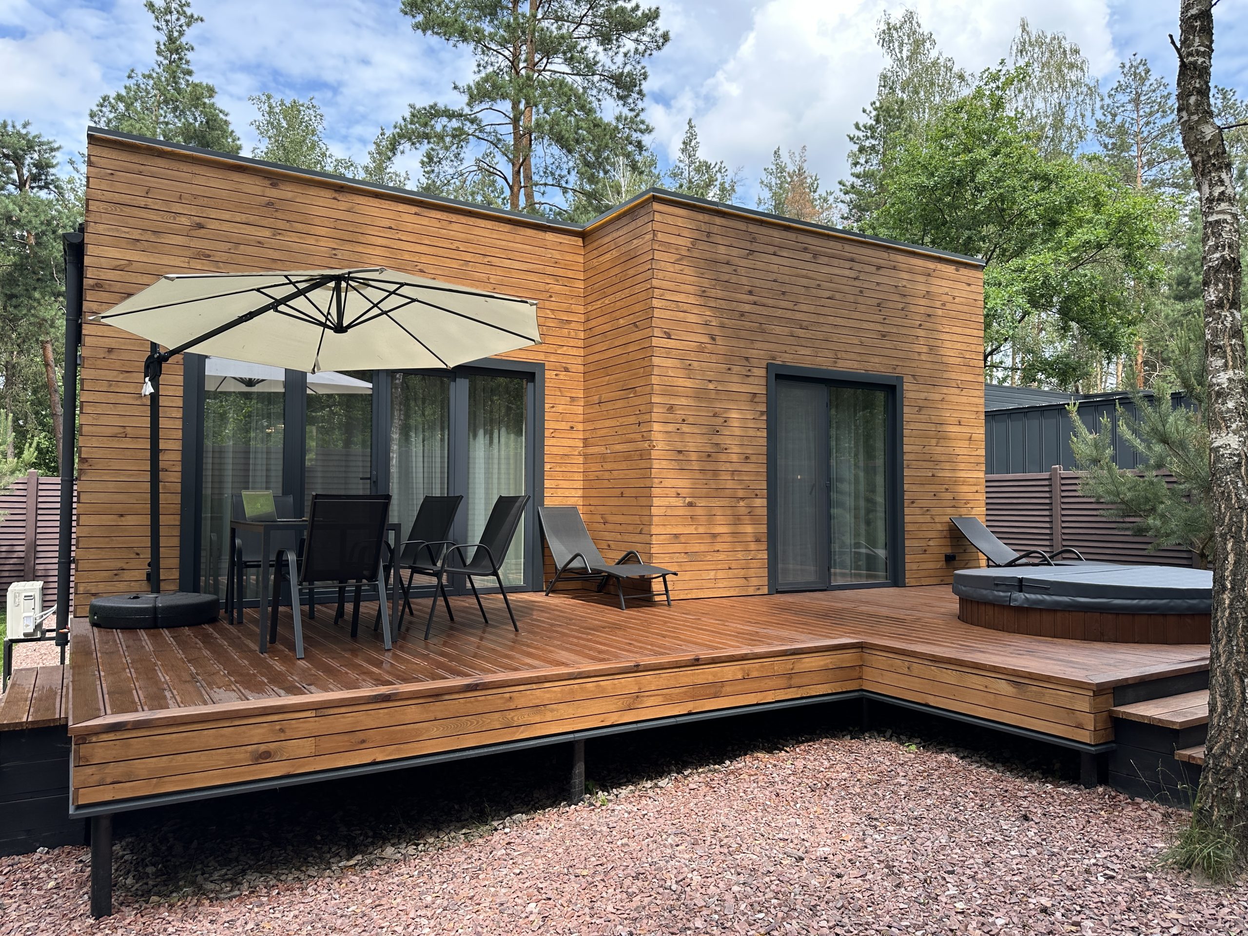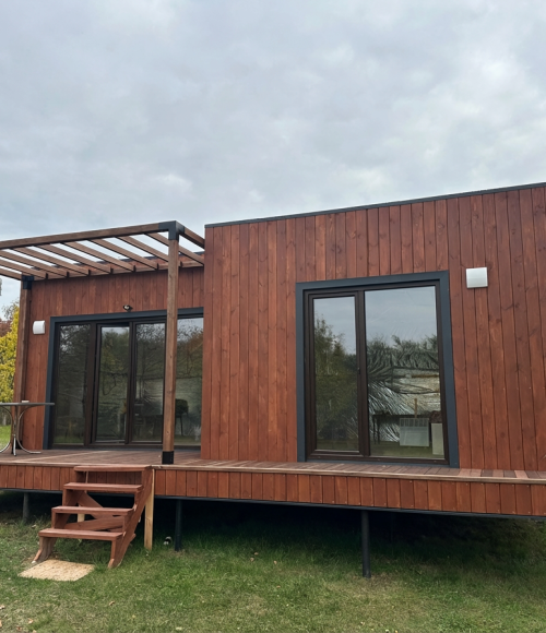 Цей дім — вдале поєднання зручності, сучасного дизайну та функціональності. Завдяки мінімалістичному даху, панорамним вікнам і лаконічній формі, він виглядає стильно і водночас не потребує складного монтажу.