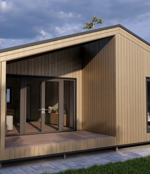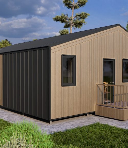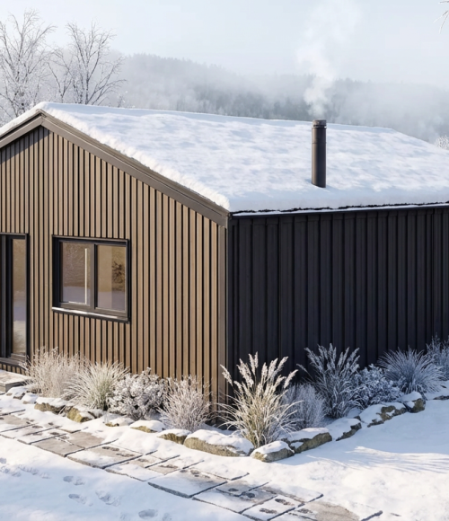 Будинок має класичний двосхилий дах, що поєднує естетику з практичністю: надійне водовідведення, довговічність та стриманий стиль, який пасує до будь-якого ландшафту.