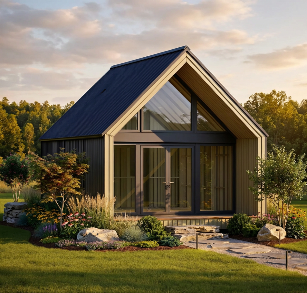 Міні барнхаус – це чудове рішення для тих, хто цінує компактність, комфорт та стиль. Будинок площею 36 м² об’єднує сучасний дизайн з практичністю, створюючи затишний простір для відпочинку, проживання чи бізнесу.